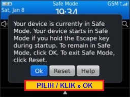 Jadi, sebelum melakukan langkah yang ekstrim coba sobat atasi probleme ini dengan menggunakan program Blackberry Safe Mode. Adapun cara atau langkah-langkah untuk mengakses program Blackberry Safe Mode adalah sebagai berikut.